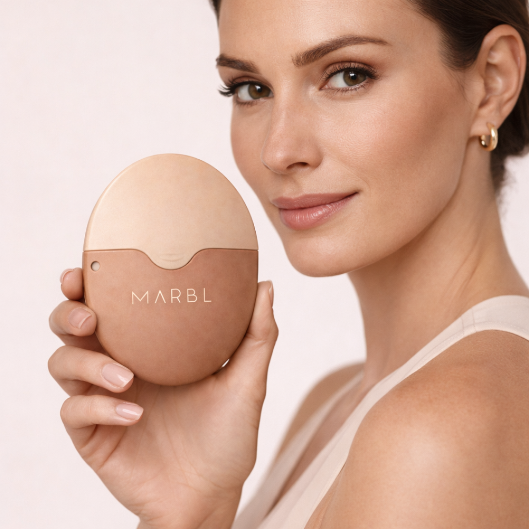 De Marbl Sunscreen Applicator is ontworpen voor alle huidtypes en maakt dagelijkse bescherming tegen de zon eenvoudig, schoon en moeiteloos – ongeacht je routine.